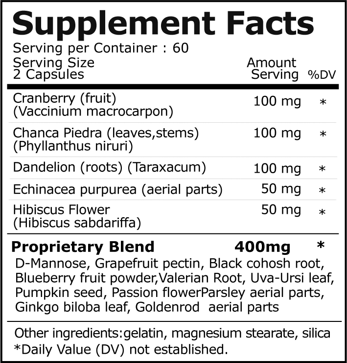 | Kidney & Bladder, Urinary Tract Health Detox & Repair Supplement With Cranberry | |